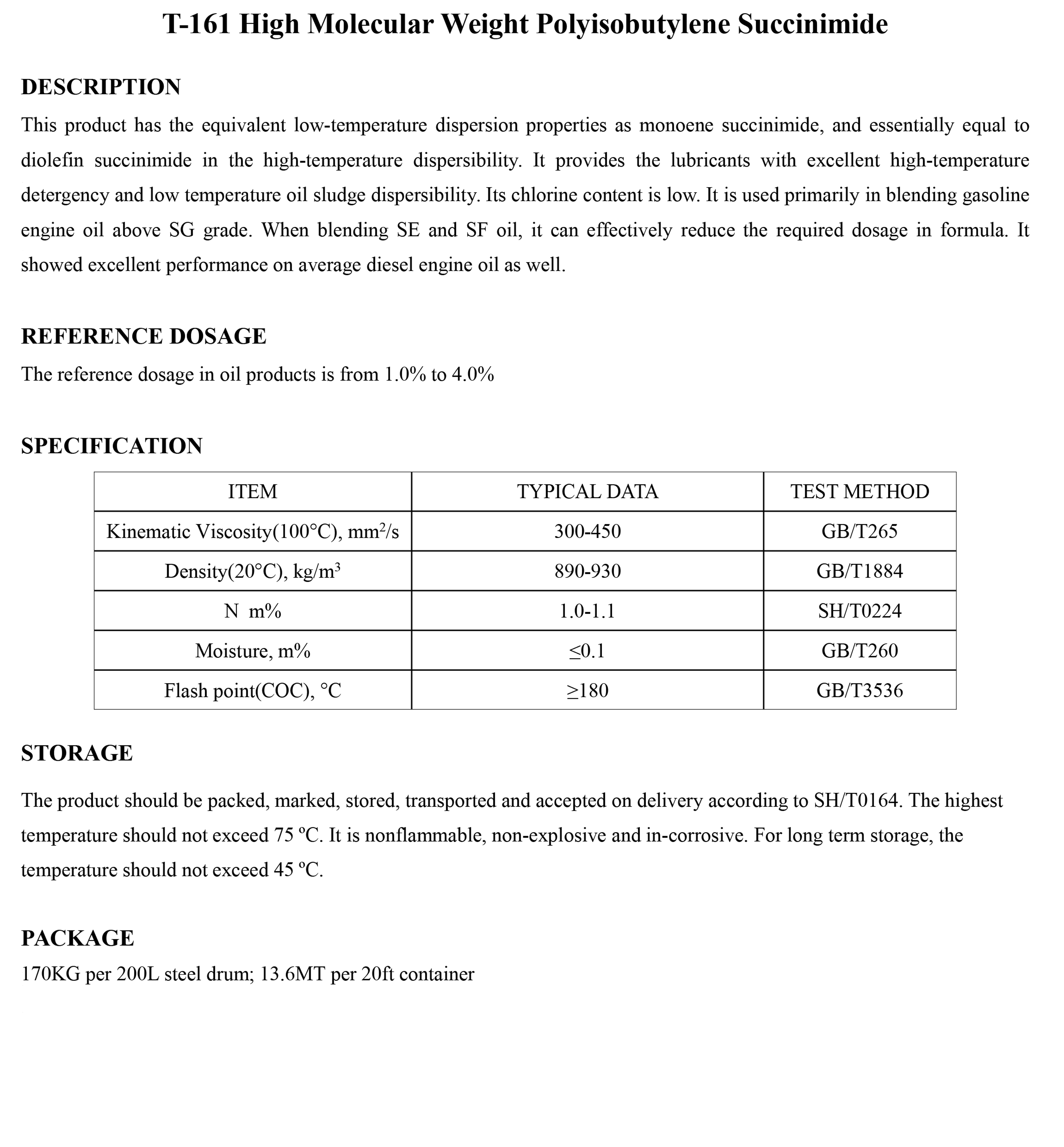 T-161 High Molecular Weight Polyisobutylene Succinimide-Dispersants-锦州新兴石油添加剂有限责任公司