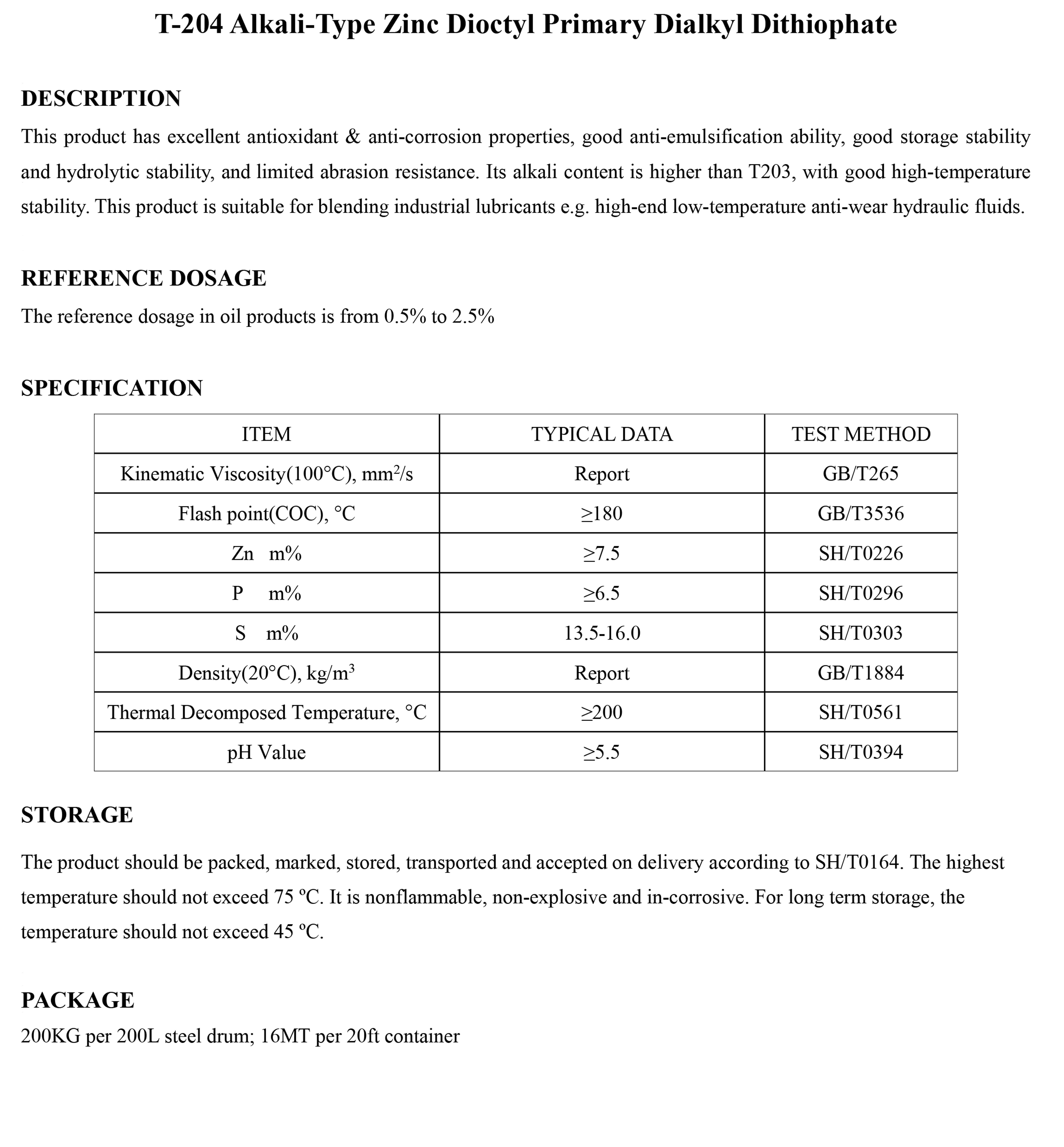 T-204 Alkali-Type Zinc Dioctyl Primary Dialkyl Dithiophate-ZDDP-锦州新兴石油添加剂有限责任公司