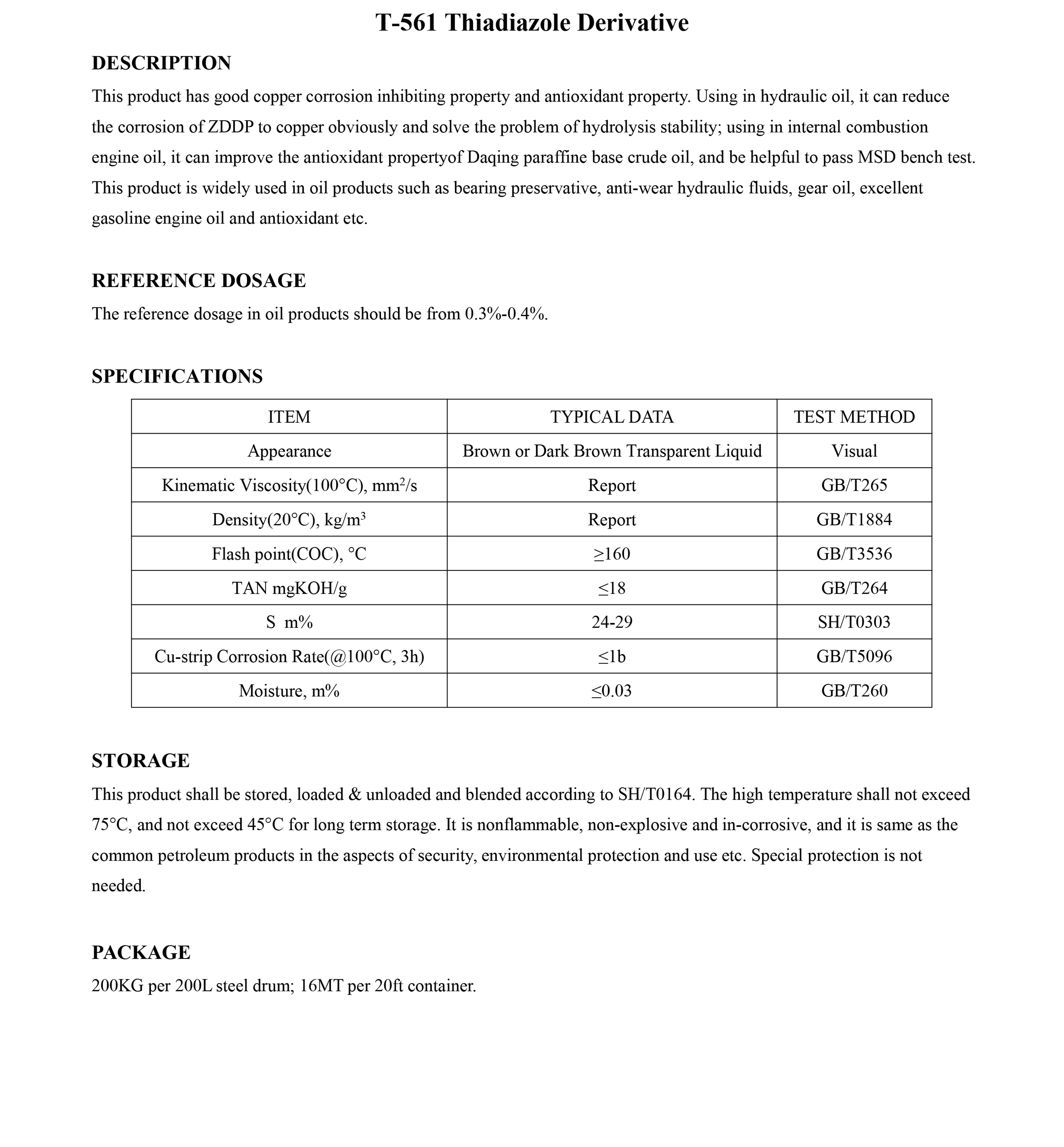 T-561 Thiadiazole Derivative-Antioxidant and Antiglue Additive-锦州新兴石油添加剂有限责任公司