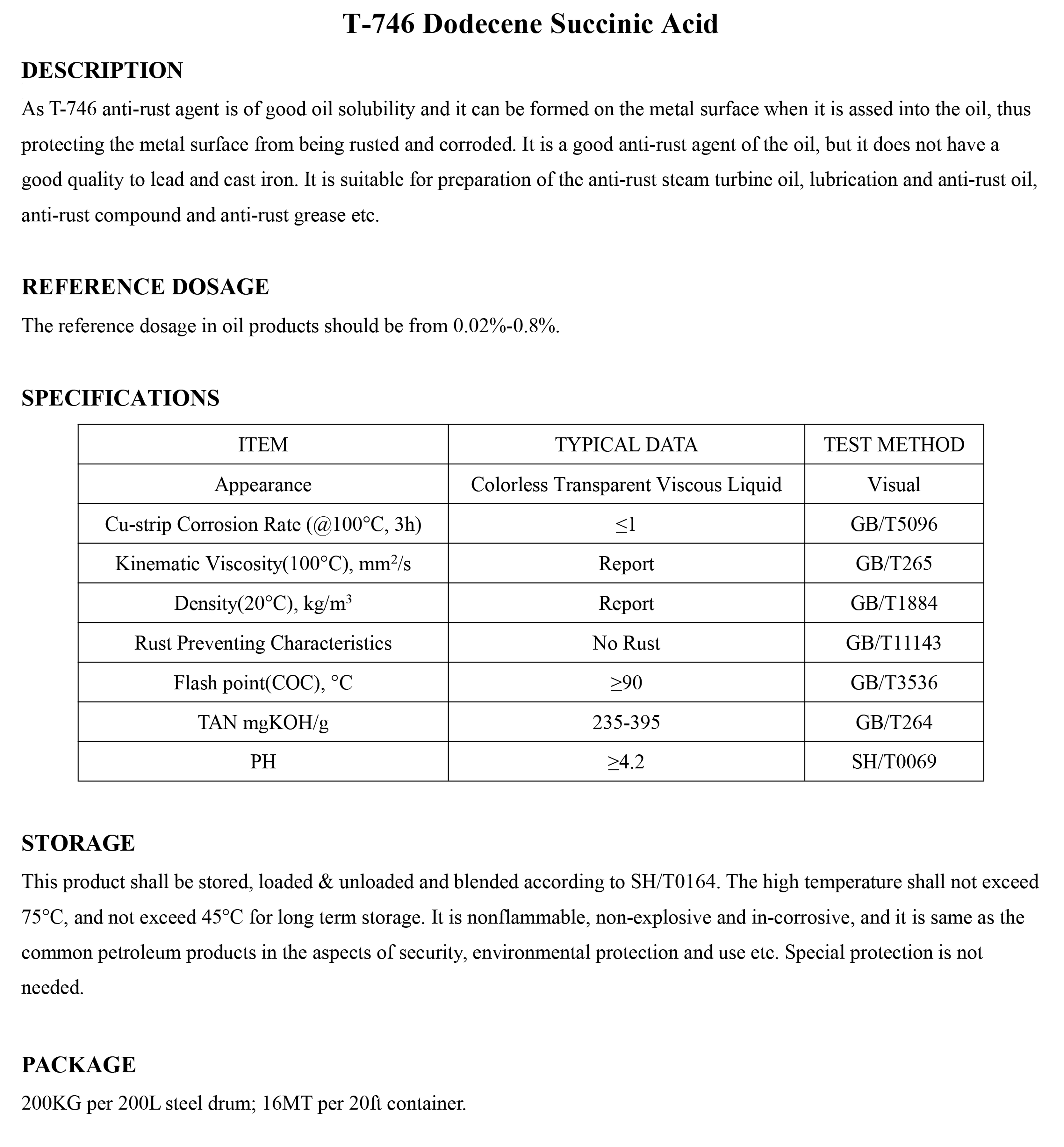 T-746 Dodecene Succinic Acid-Antirust Additive-锦州新兴石油添加剂有限责任公司