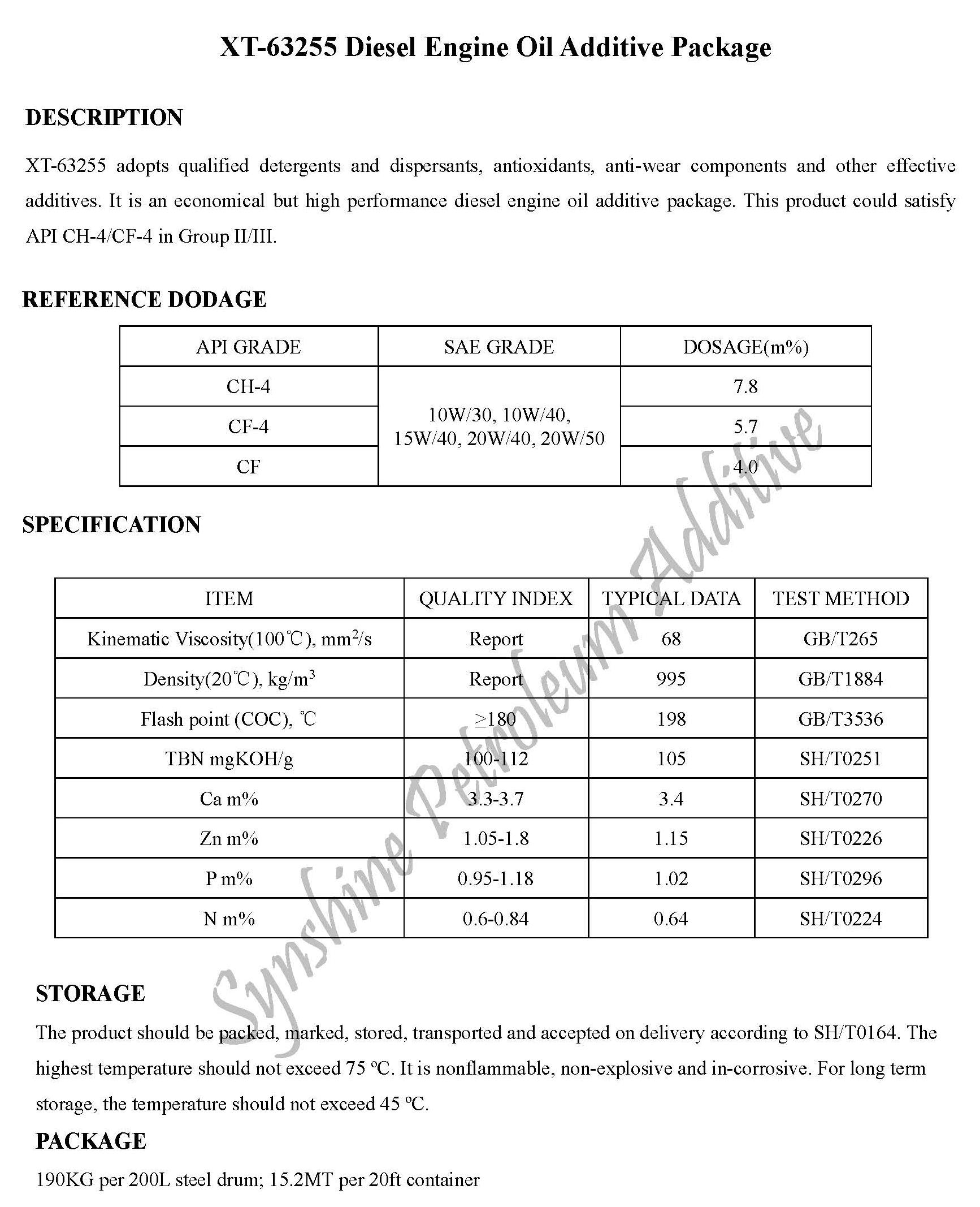 XT-63255 Diesel Engine Oil Additive Package-Engine Oil Additive Package-锦州新兴石油添加剂有限责任公司